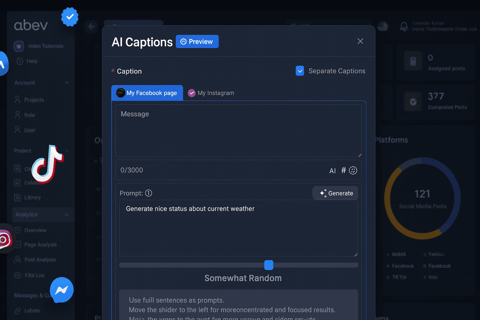 Design, generate, and edit eye-catching visuals directly in Abev.ai—no extra tools required.